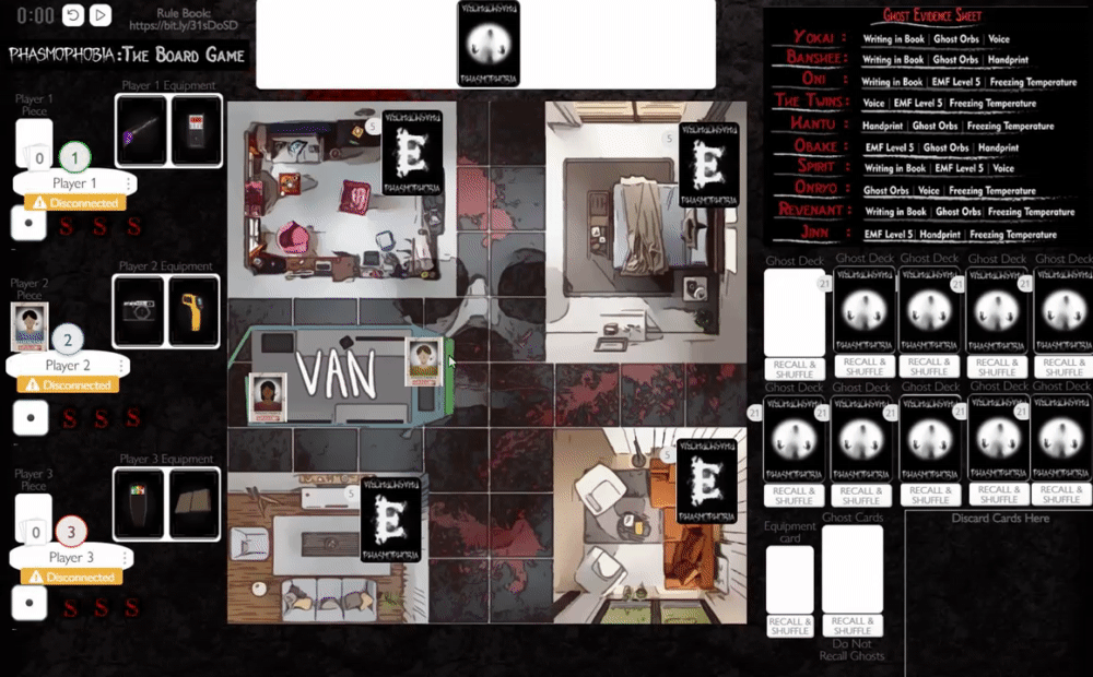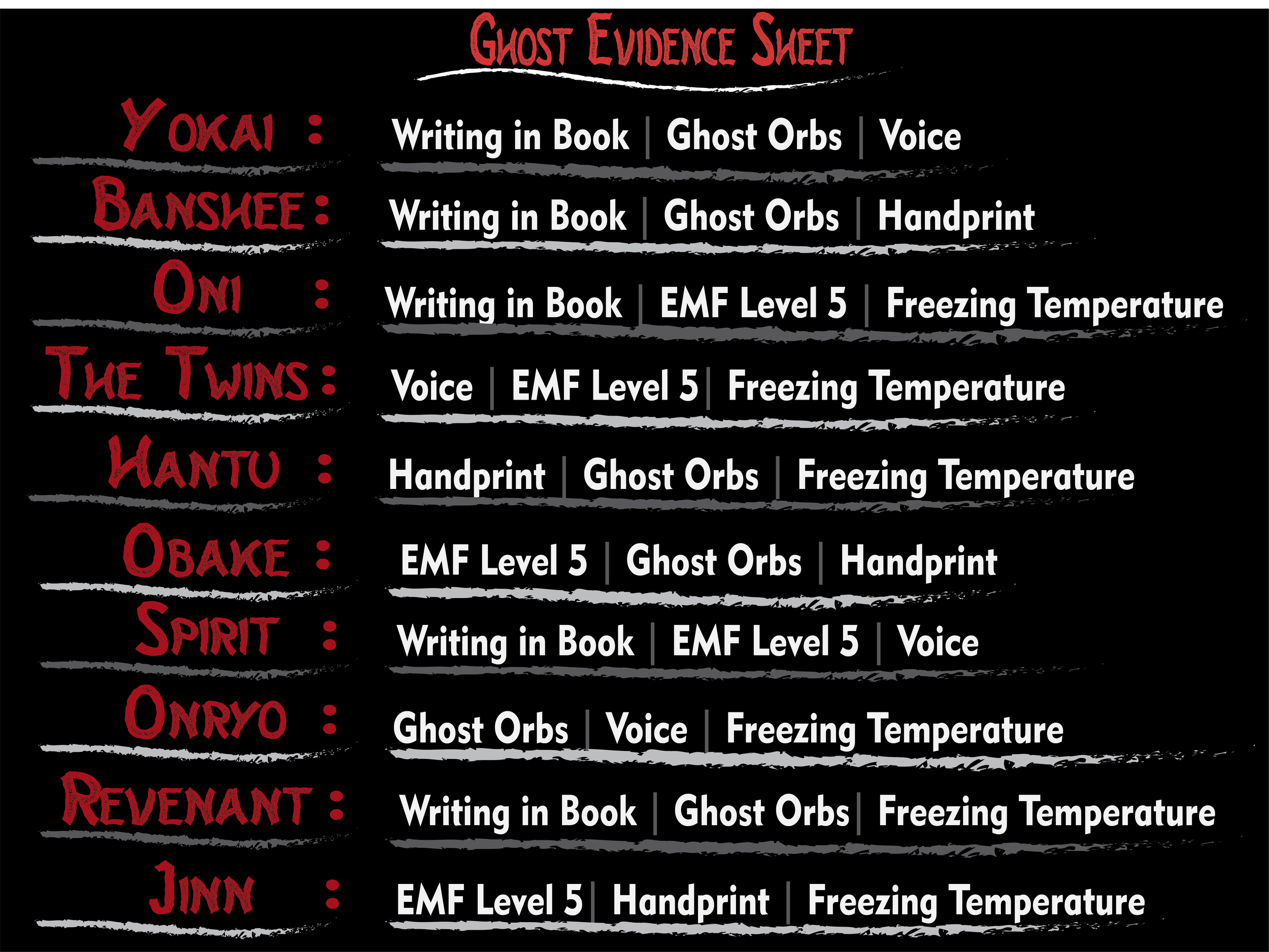 This game requires teamwork in order to discover evidence to figure out which type of ghost is haunting the house you are in. Utilize the Ghost Evidence Sheet to match the evidence collected with the Ghost that produces said evidence.